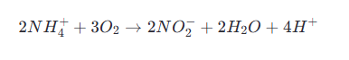 1、亞硝酸菌(Nitrosomonas, Nitrosococcus等)將氨氮氧化成亞硝酸鹽(NO??):